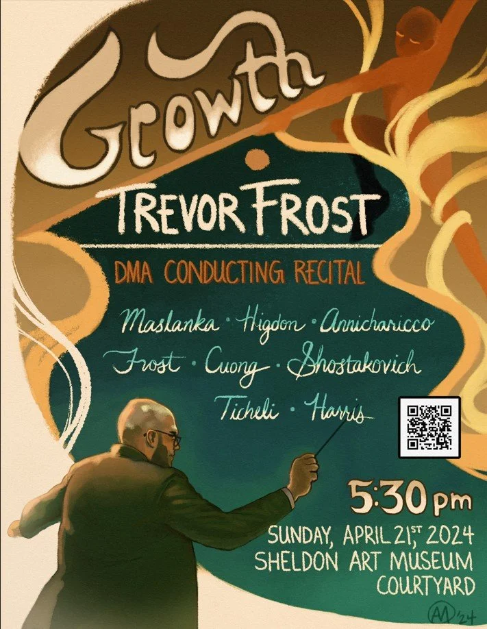 A New Hampshire native, Trevor Frost has been writing music for over ten years and has worked as a guest composer/conductor, clinician, teacher, and performer. He describes his music as “A single seed that which contains the world.”